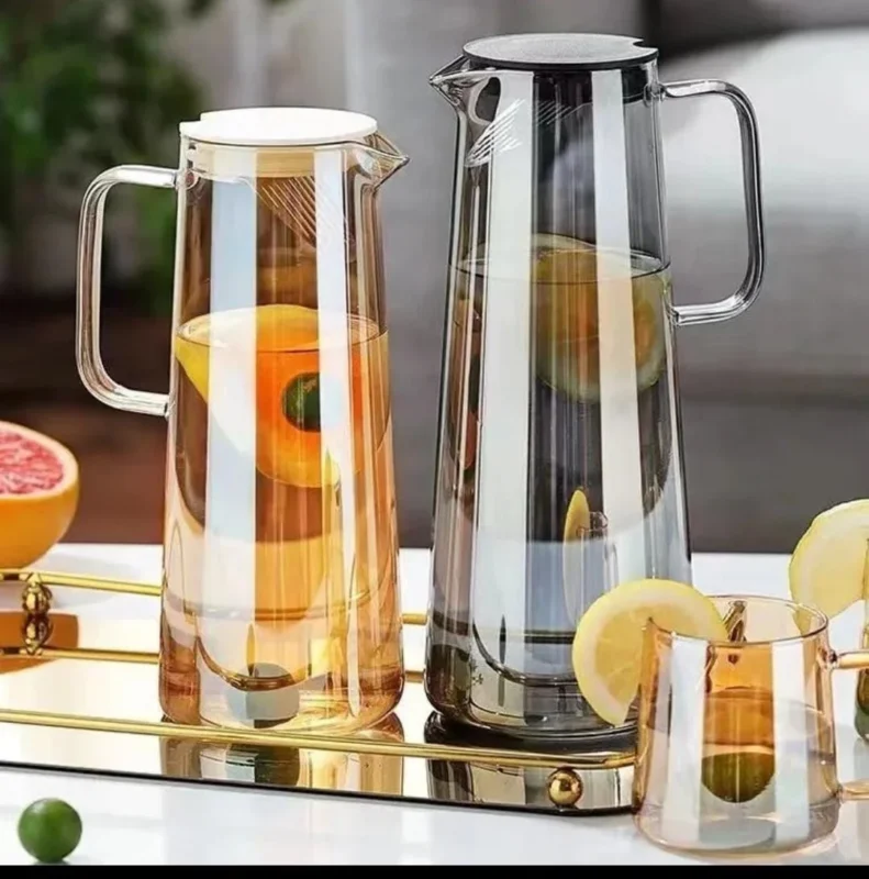 Heat Resistant Glass Water Jug, Glass Pitcher With Lid Jug, Handle For Hot Cold Beverages