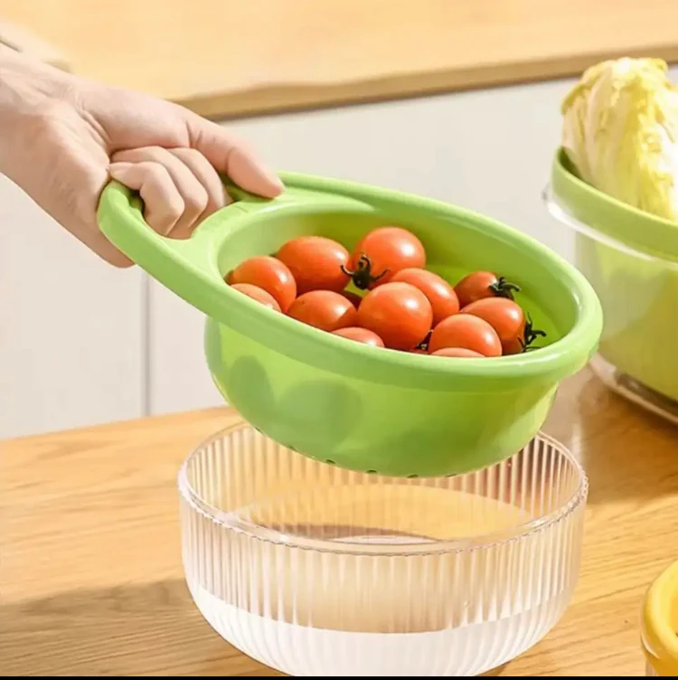 Plastic Kitchen Drain Basket, Double Layer Rice Wash Basket, Colander Set with Bowl Strainer